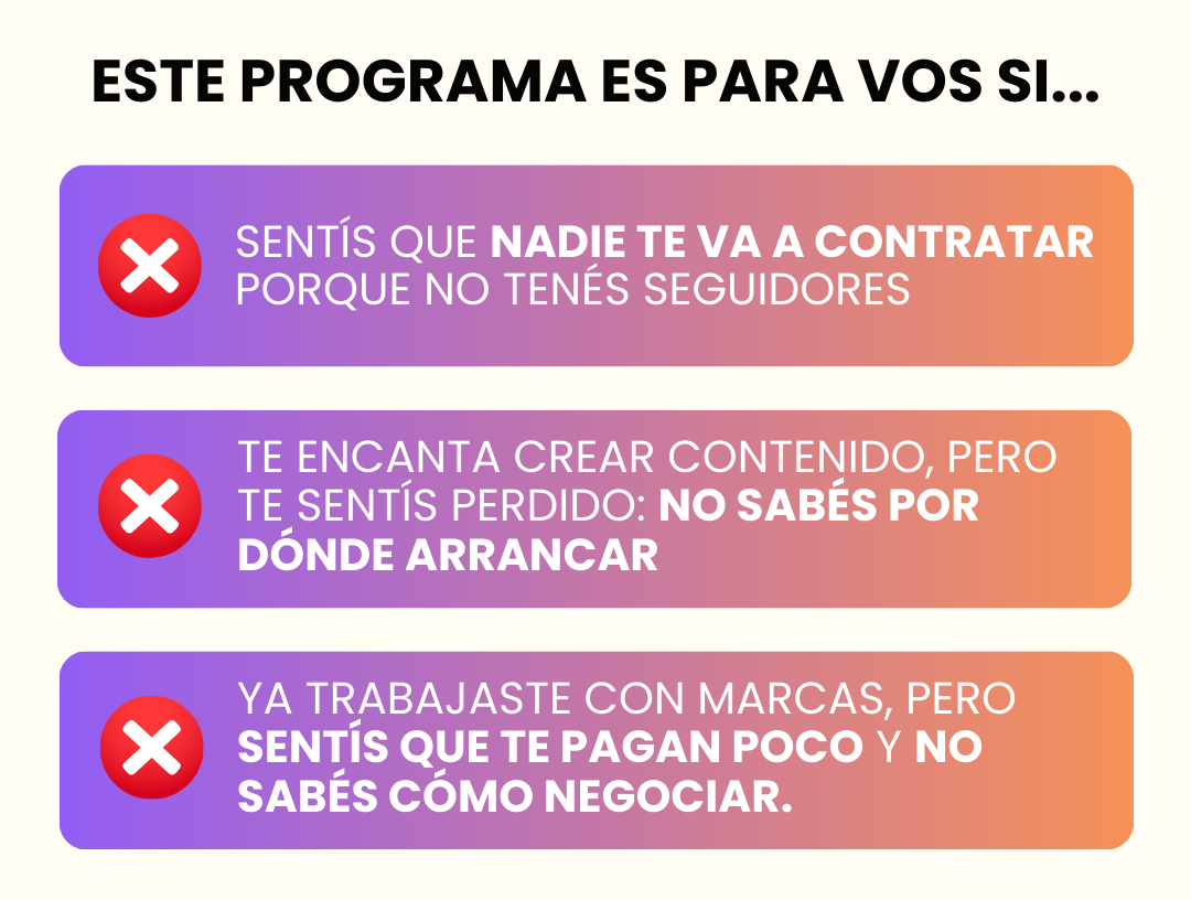 ¡Perfecto! Este curso te guía desde cero. Vas a aprender cómo contactar marcas, qué decirles, cómo armar propuestas y cómo negociar tarifas sin parecer inexperto.